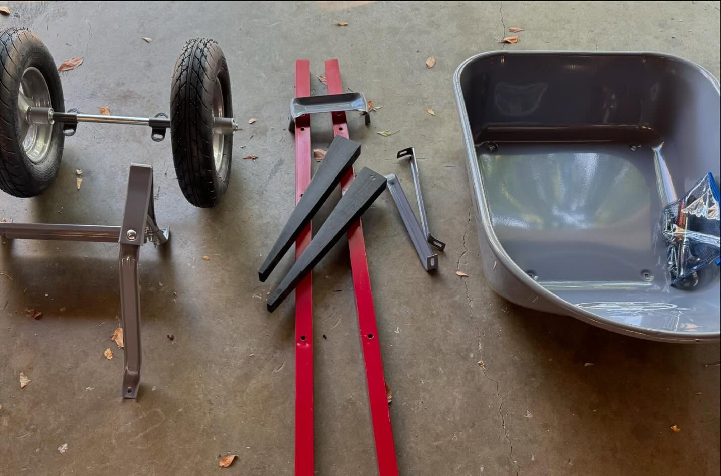 A wheelbarrow, it turns out, is. “Your father took it apart but didn’t write down any directions,” my mom added. “It had to fit in the back of the car – with all the bean bag chairs.”