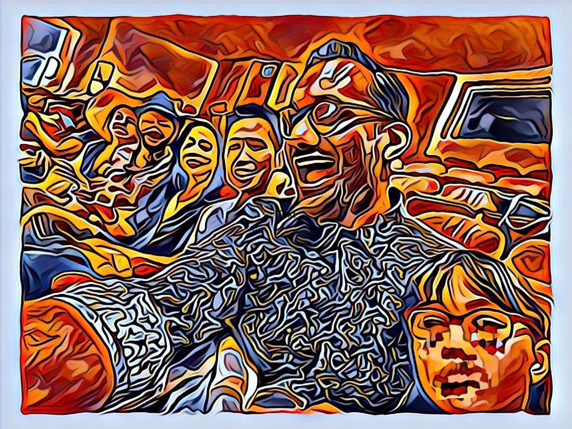 We popped out into the sun-bleached streets, and there beside us were Corrin and Dafne, rising up the BART escalator. “Hey! You dressed up!” Corrin lit up and Dafne ducked behind him.